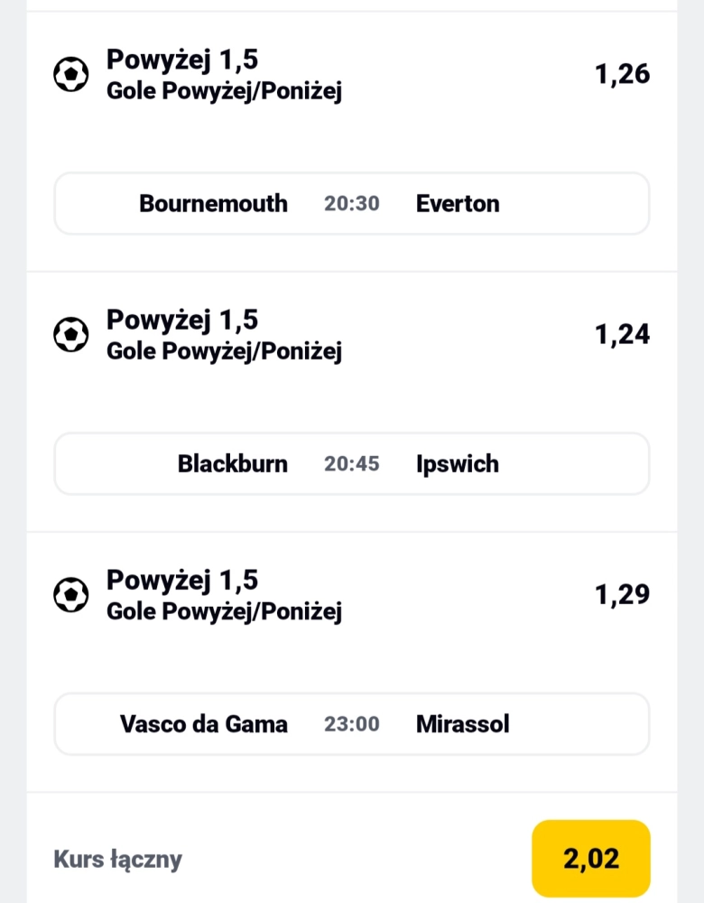 Gdybym był odważny to dał bym dziś Bayern(-3), Union Berlin (wygrana do zera), Marsylia(wygrana oraz over2.5), Everton plus Man.City.