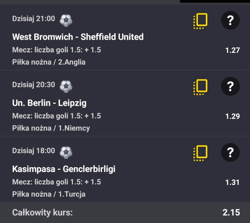 Gdybym był odważny to dał bym dziś Bayern(-3), Union Berlin (wygrana do zera), Marsylia(wygrana oraz over2.5), Everton plus Man.City.