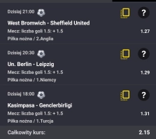 5. Piłka nożna Union Berlin vs RB Lipsk Typ: +1.5Kurs: 1.26