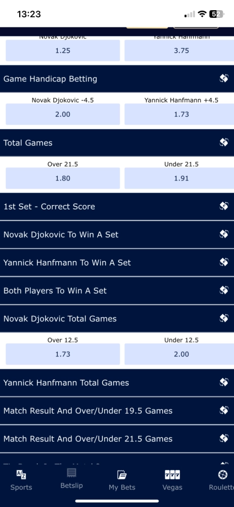 Ciekawy typ jest dziś w niektórych bukach. U mnie na William Hill znalazłem dzisiejszy mecz tenisowy Djokowicza z Niemcem w Grecji ATP. Djoko powyżej 12.5 gema kurs @1.73. Ja biorę.