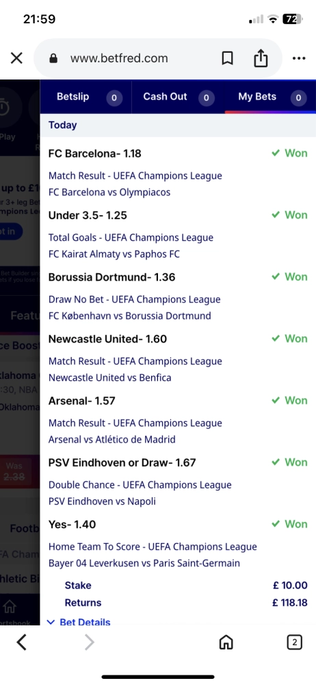… Kupon „ryzykant” za 10 funtów nie wszedł. Ale na Serbii zarobiłem £60. Minus £10 to £50 zarobione.