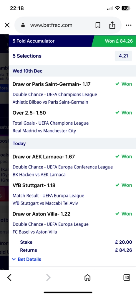 Gdybym był odważny to dał bym dziś Bayern(-3), Union Berlin (wygrana do zera), Marsylia(wygrana oraz over2.5), Everton plus Man.City.